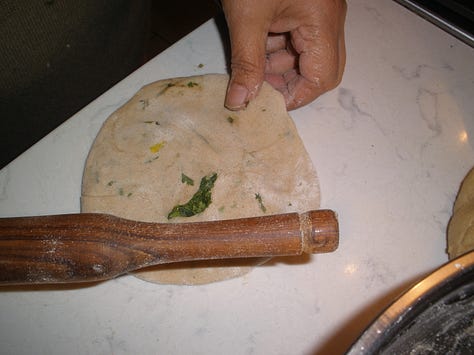 i’m breaking my substack hiatus to share something very important. with permission, i have durga vishwanathan’s paratha recipe - learned, tested, and ready to share. as a bonus, there’s a mango pickle recipe and instructions on how to make plain paratha.
